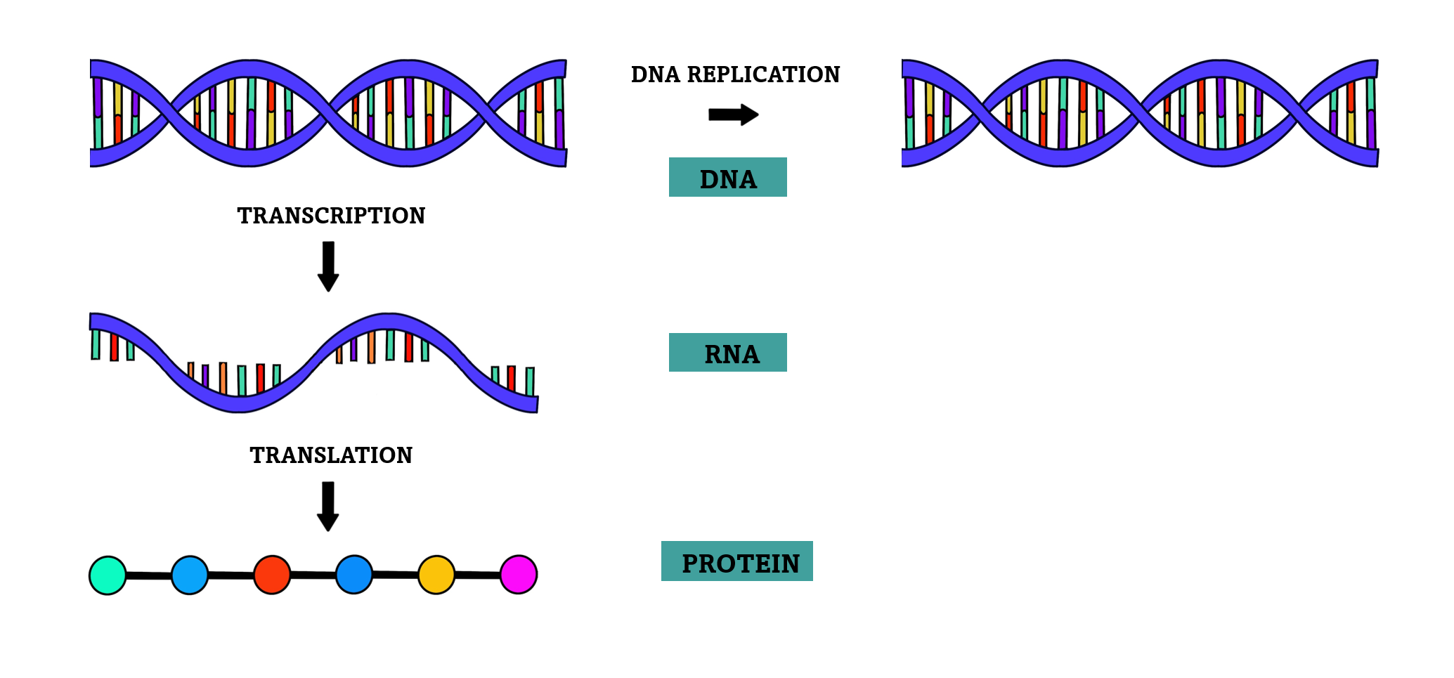 The theory originally stated that genetic information flows in three possible ways: a) DNA replication, b) transcription, c) translation.