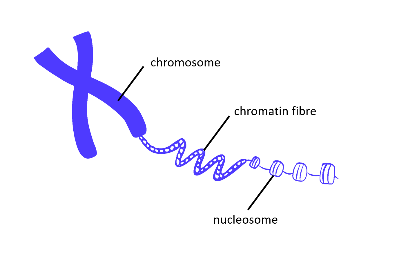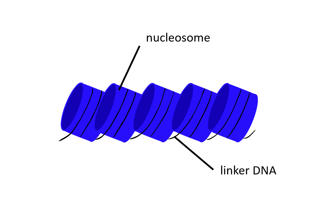 We often describe the chromatin fibre as a series of beads on a string. The string is in fact the DNA and the bead is a nucleosome. Because the DNA connects the individual nucleosomes, it is also sometimes referred to as the linker DNA.