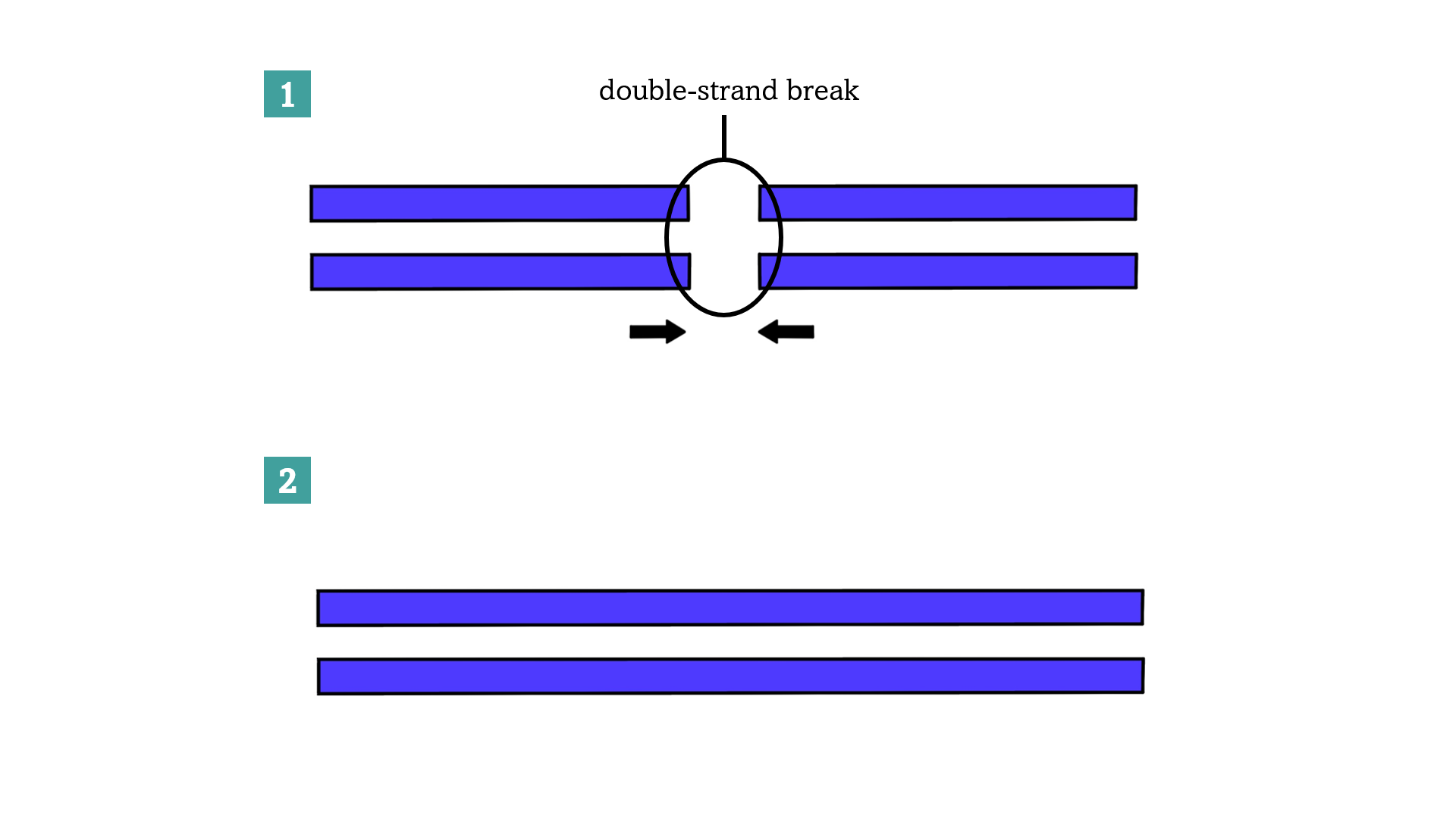 So far, we’ve only mentioned DNA repair mechanisms that can repair damage to one of the DNA strands, using the second as a template. However, if both DNA strands are damaged, the organism can use the double-strand break repair. To be more precise, it can use one of its two subtypes: 1) nonhomologous end joining, 2) homologous recombination. In nonhomologous end joining, the broken DNA ends are just sticked together. As you can imagine, this is not precise, but it is fast.