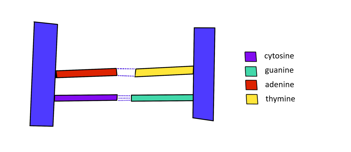 As you probably know, Watson and Crick found out that DNA actually consists of two polynucleotide chains that form a double helix. This is possible because there are hydrogen bonds between bases of the opposite chains. However, there are some rules for this base-pairing as adenine is always paired with thymine, and guanine is always paired with cytosine. Because of this, the two chains of DNA are said to be complementary as each strand contains bases that pair together.