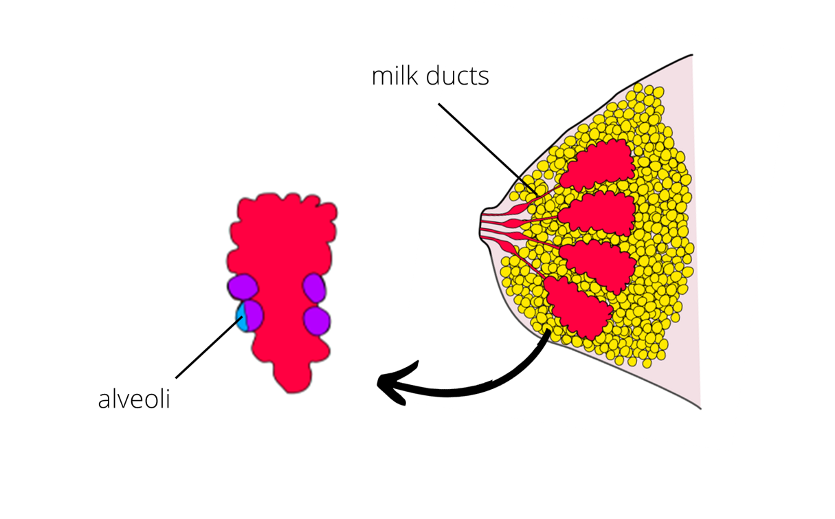 Prolactin has three major effects. The first one is breast development. During puberty, prolactin stimulates development of mammary ducts, the ducts milk is transported through, and also, during pregnancy, it stimulates development of mammary alveoli, which produce milk after childbirth. Prolactin also stimulates milk production by inducing the synthesis of its components and it also stimulates milk secretion during breastfeeding.