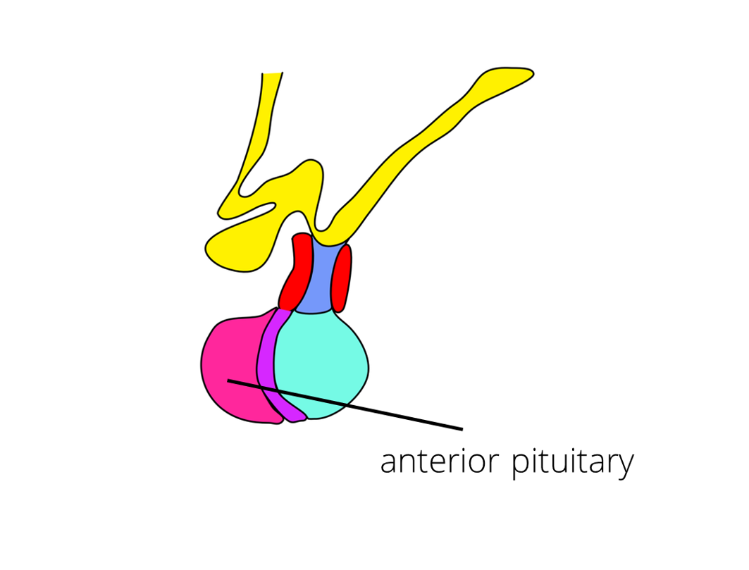 Prolactin is synthesized by special cells called lactotrophs in the anterior pituitary. There’s not a lot of prolactin in the blood as its blood levels only increase during pregnancy and lactation. This, of course, only applies to women, because in men, its blood levels are low constantly. During pregnancy, prolactin's blood levels rise considerably. However, there are also high levels of estrogen and progesterone that down-regulate prolactin receptors in the breasts. (Down-regulation means that there’s less receptors of the hormone or the hormone doesn’t bind that easily to its receptor.) This inhibition is essential to make sure that there is no lactation until the child is born. When estrogen and progesterone levels decrease significantly during childbirth, prolactin then starts to stimulate milk production and lactation can start.