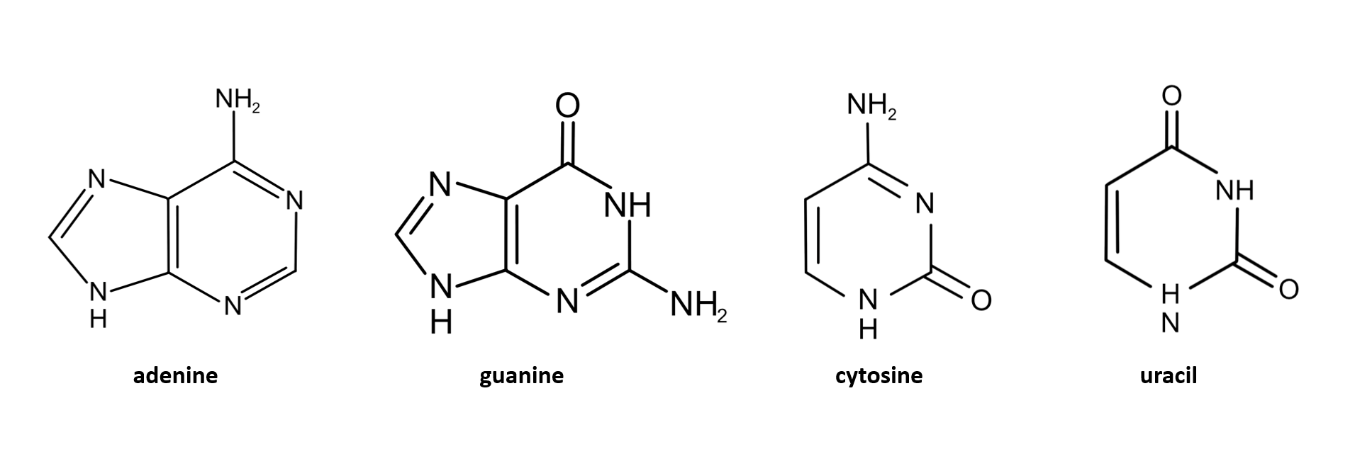 While DNA is double-stranded, RNA is usually single-stranded (with some exceptions). However, short segments of RNA can pair and form different secondary structures.